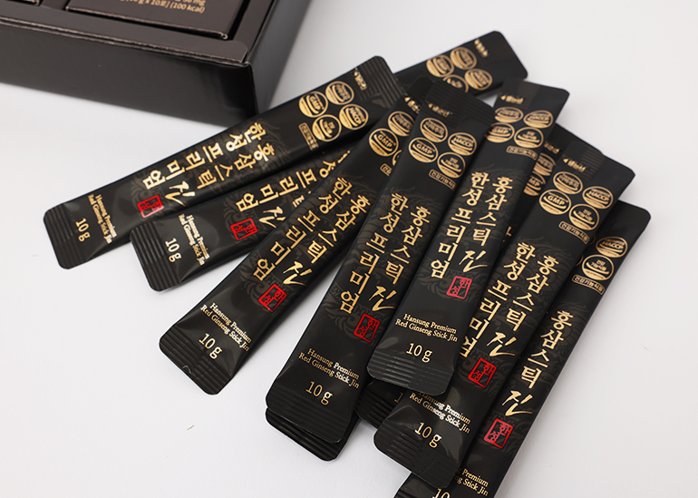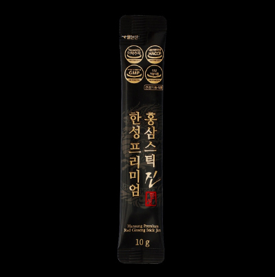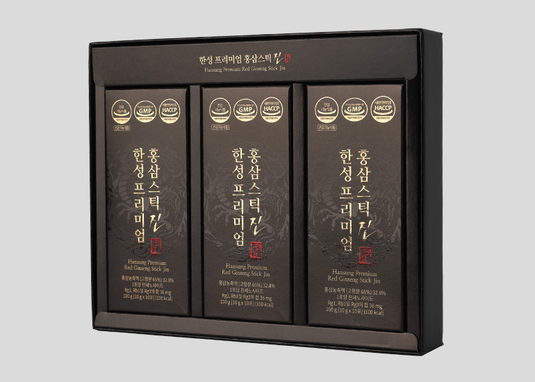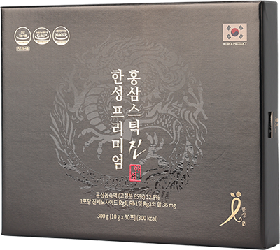 세계적으로 효능을 인정받고 있는 대한민국 홍삼은 대한민국 정부기관인 식품의약품 안전처에서 면역력 증진, 피로 개선, 기억력 개선, 혈소판 응집억제를 통한 혈액 흐름 개선, 항산화에 도움을 주며 갱년기 여성의 건강에 도움을 줄 수 있음을 인정받고 있습니다. 한성프리미엄 홍삼스틱 진은 스틱 1포당 36mg의 진세노이드 함량의 프리미엄 6종 기능성 건강기능식품 입니다.